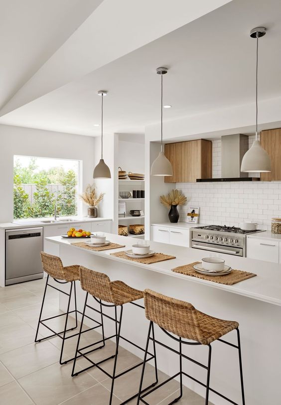 Finally, we can achieve rhythm in many different ways by using colourful pillows, rugs, and art pieces, for example, but also by using finishes, lighting fixtures, and decorative objects. Let your eyes dance to the design rhythm!